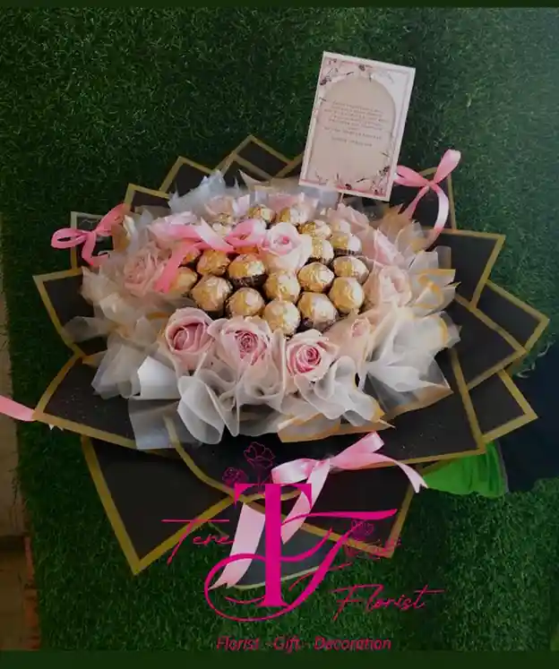 Rangkaian bunga hand bouquet cantik ini diberikan kepada seseorang yang dikasihi sebagai bentuk ucapan selamat.