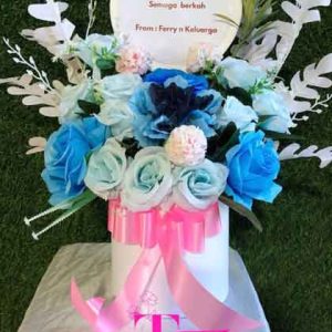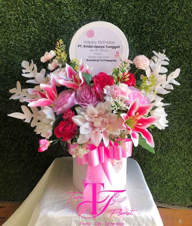 Rangkaian bunga meja ini diberikan kepada seseorang atau perusahaan sebagai hadiah (gift) atau kado ucapan selamat, misalnya ucapan selamat ulang tahun atau selamat atas pembukaan usaha baru (grand opening). Rangkaian bunga ini dirangkai dengan spesifikasi sebagai berikut :