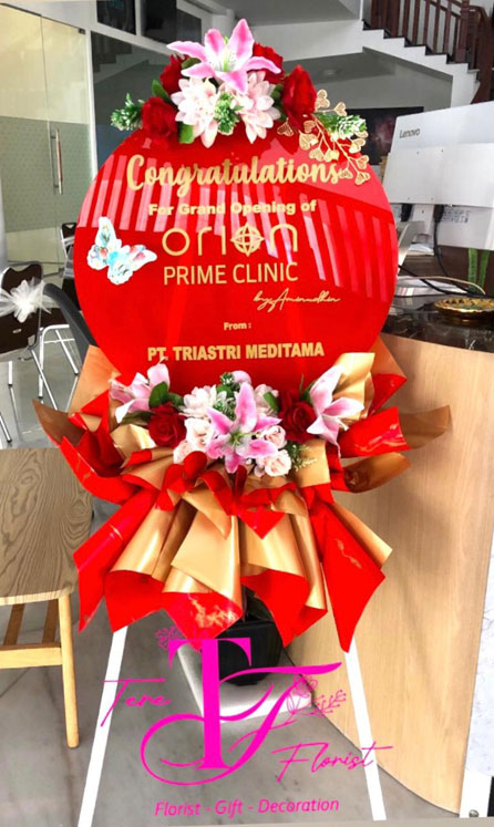 Karangan bunga akrilik ini bentuknya mini serta kekinian yang sering dipesan sebagai bentuk ucapan selamat (congratulation) atas pembukaan usaha baru (grand opening).