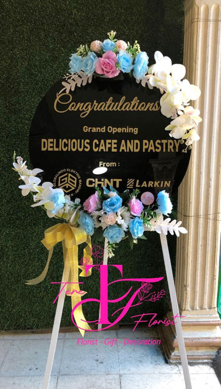 Karangan bunga akrilik ini diberikan sebagai bentuk ucapan selamat (congratulation) atas pembukaan suatu usaha baru (grand opening)
