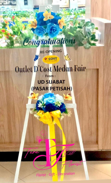 Karangan bunga akrilik ini diberikan sebagai bentuk ucapan selamat (congratulation) atas pembukaan kembali suatu usaha
