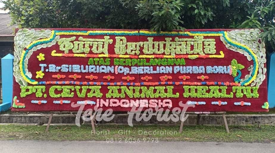 Karangan bunga papan ini dirangkai sesuai model atau ciri bunga papan di kota Medan. Berikut adalah spesifikasinya :